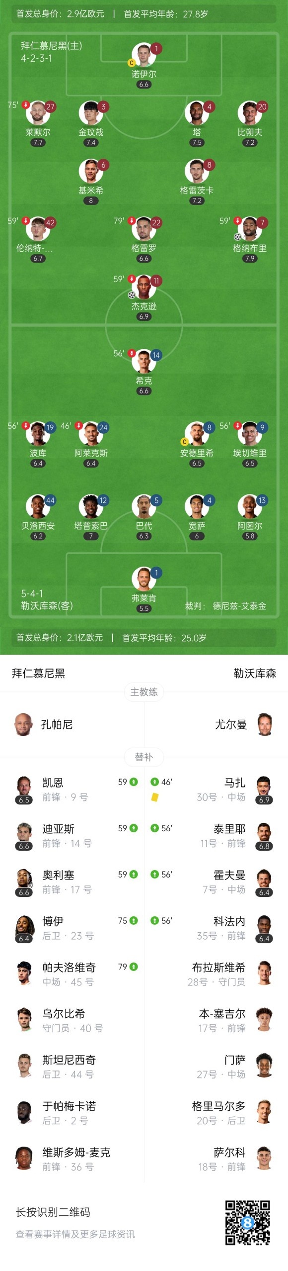 下半场补时3分钟,拜仁3-0勒沃库森。