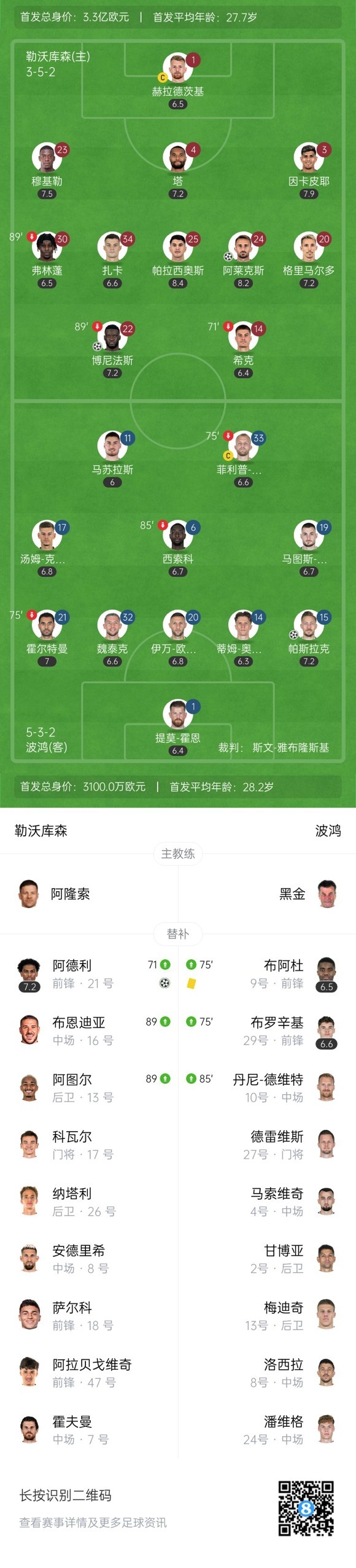 第60分钟,药厂反超比分!右路定位球开到禁区后点因卡皮耶摆渡到门前博尼费斯推射破门,勒沃库森2-1波鸿。↓