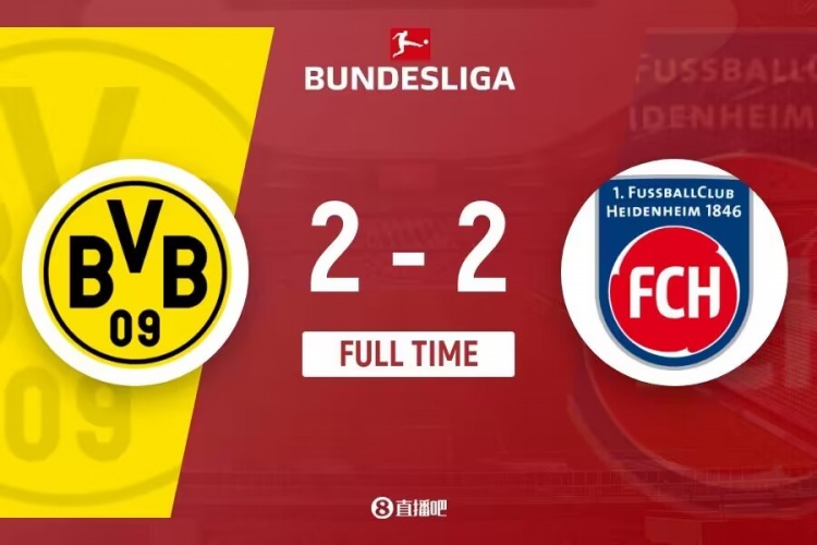 德甲-两连平!多特连丢两球2-2遭升班马海登海姆扳平 布兰特凌空斩