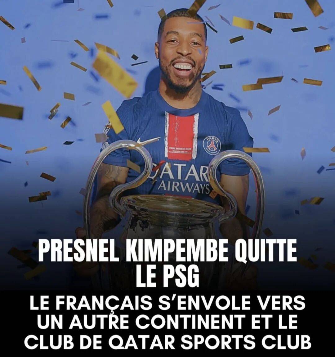 法甲豪门巴黎圣日耳曼正式官宣,后卫金彭贝结束20大巴黎生涯,正式转会卡塔尔SC。