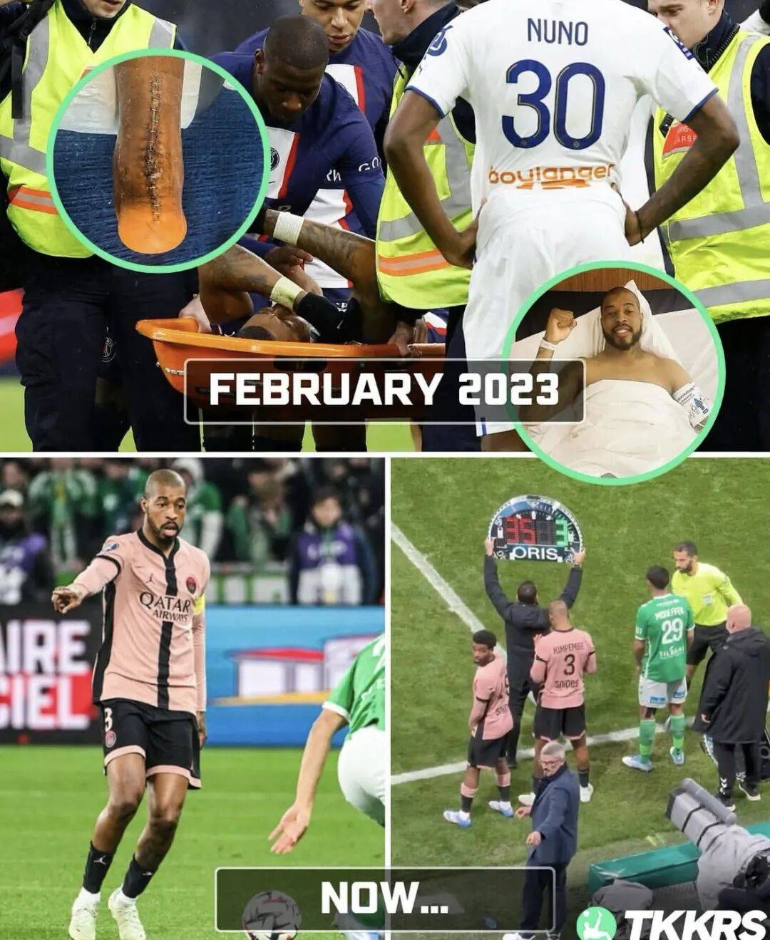不过,2023年2月26日客战马赛时,金彭贝遭遇跟腱断裂重伤长期缺阵。时隔近2年后,今年2月金彭贝正式复出。