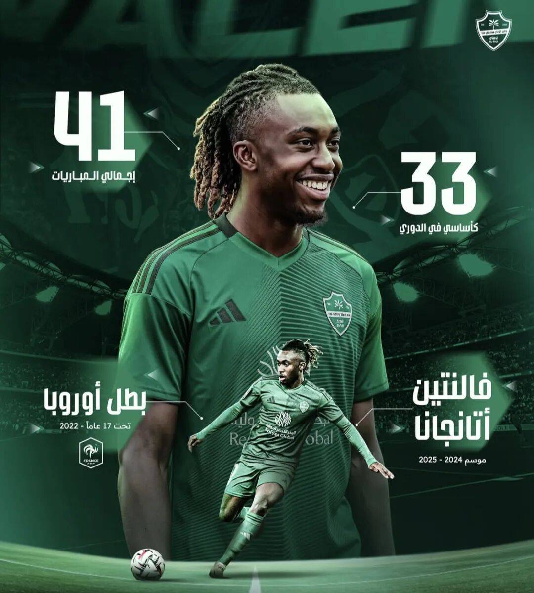 现年20岁的阿坦加纳,司职中场,目前德转身价1000万欧。上赛季代表球队出战了34场法甲联赛。阿坦加纳出自兰斯的青训体系,随后在一线队站稳脚跟。