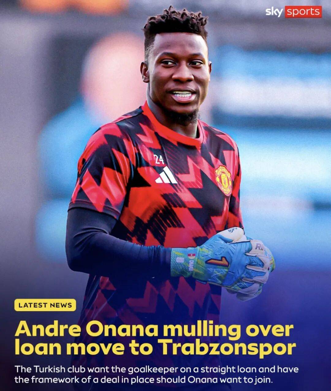 据名记罗马诺的消息,曼联门将奥纳纳租借加盟特拉布宗体育,这笔交易不包含买断条款,Here we go!