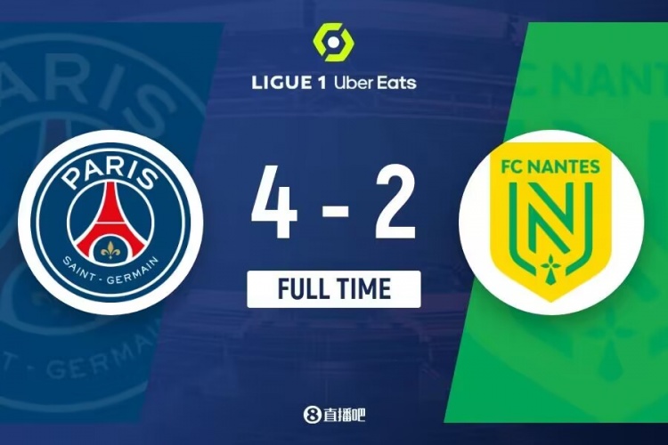 全场比赛结束,巴黎4-2南特。