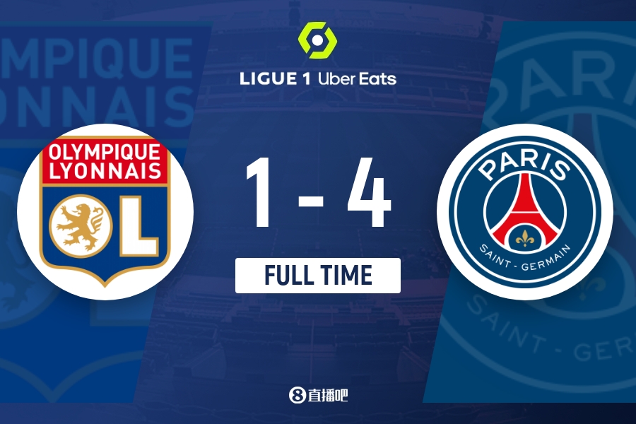 下半场伤停补时4分钟,全场比赛结束,最终巴黎4-1里昂。