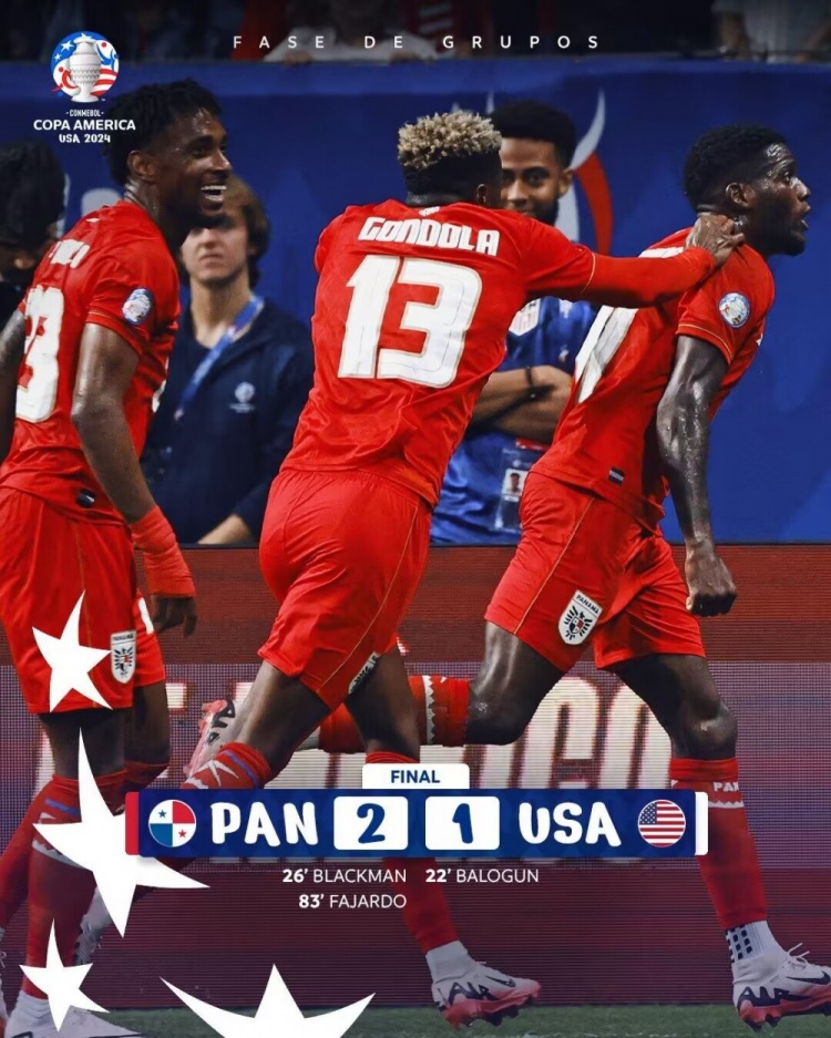 6月28日讯 北京时间06:00,美洲杯小组赛C组第2轮,巴拿马vs美国。上半场,麦肯尼进球被吹;小维阿拳击对手染红!巴洛贡爆杆世界波破门;布莱克曼贴地斩扳平;巴洛贡半场补时中框。下半场,法贾尔多造点,主裁判点后又取消!第83分钟,法贾尔多帮助巴拿马反超!卡拉斯基利亚88分钟故意背后踢倒普利西奇染红!