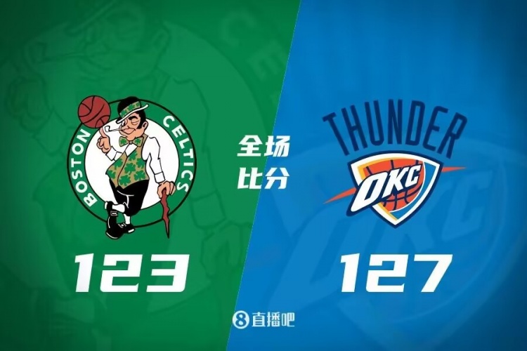 上半场之争双方打出了两队应有的实力从开局就一路僵持,雷霆节中抓对手熄火的机会送出10-2的攻势短暂拉开比分但很快就被绿军追上;次节雷霆再度送出10-3的攻势取得上半场最大的9分优势;但亚历山大双拳难敌对面的群攻,绿军迅速回敬9-0的攻势追上比分,塔图姆则在最后2分钟里连砍9分帮助球队反超3分进入下半场。休息归来雷霆抢开局轰出18-8的攻势一举扭转局势,整个第三节也成了亚历山大和基迪的表演秀,前者砍下16分,后者送出11分5助攻,在两人的带动下雷霆轰出单节40分并依据建立起两位数领先;这之后雷霆一度拿到18分的领先优势,绿军及时反弹迅速打出10-0的攻势缩小分差,雷霆则一路溃败导致分差被缩小至2分,不过杰威最后打进致命进球加上球队稳定罚球奠定胜局。最终,雷霆主场127-123击败凯尔特人拿下比赛。