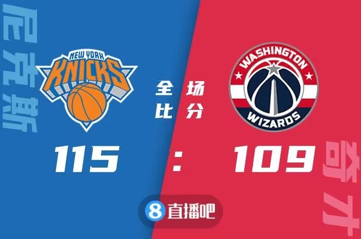 比赛开局,奇才外线手感火热,其中波尔津吉斯个人五投全中,单节得到19分,帮助奇才建立两位数的领先。次节奇才延续状态继续扩大分差至19分,但随后尼克斯打出一波10-0迫近比分,半场结束奇才64-60仅领先4分。易边再战,尼克斯延续势头很快取得反超,兰德尔进攻端予取予求,此后两队陷入拉锯战,三节结束尼克斯领先1分。末节回来,两队依旧是交替取分,战至关键时刻,最后一分钟布伦森关键上篮命中,随后罗宾逊篮下又完成吃饼,尼克斯领先到4分,比赛结果盖棺论定,最终尼克斯115-109逆转战胜奇才,取得四连胜。