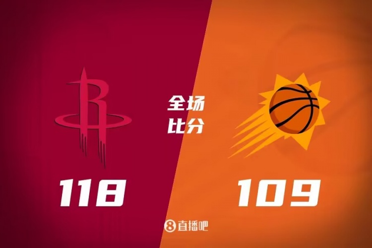 比赛开始后没多久杰伦-格林和范弗里特就展现出火热手感,在他们带领下火箭首节就建立起19分优势,太阳外线手感冰凉,第二节火箭的轮换阵容打得不好一度被太阳追到只差6分,杰伦-格林回来后帮助火箭稳住阵脚。下半场两队大打对攻战,场上分差一直在10分左右徘徊,比尔和杰伦-格林发生冲突吃到2次技术犯规被驱逐,最后一节太阳多次迫近比分但关键时刻火箭总能及时回应,太阳未能完成翻盘,临近比赛结束前布克也崴脚返回更衣室,最终火箭118-109力克太阳结束3连败。