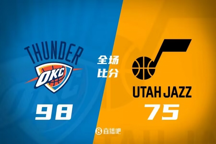 比赛开始,爵士2分多钟无得分,而雷霆顺势建立起主动权,随后爵士接连三分一度反超,但最后4分多钟又是一分未得,吉昂带领雷霆打出14-0建立起领先,次节雷霆进攻端开始发力,狄龙-琼斯里突外投带领雷霆一波9-0拉开20分以上领先,森萨博里突外投及时回应止血,半场雷霆领先18分。下半场,双方命中率都有下降,但雷霆还是保持住十几分领先,最后3分半爵士又突然断电,雷霆7-0再次领先到20分以上,末节双方都换上替补练兵,双方展开拉锯战,雷霆牢牢掌握住20分以上领先,最终雷霆98-75轻取爵士。