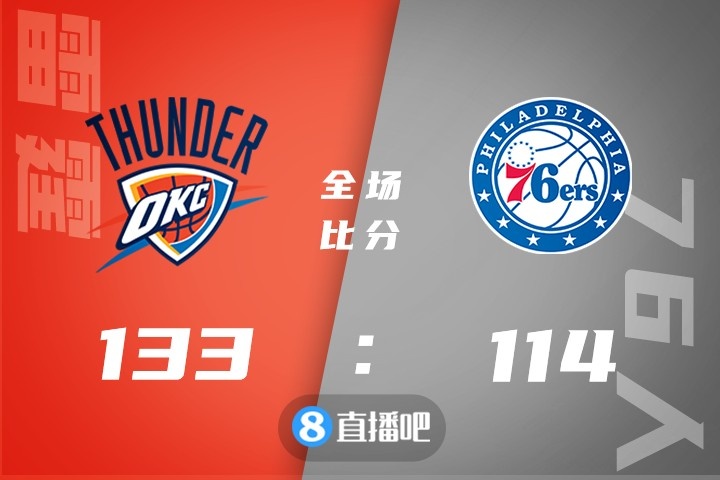 1月13日讯 NBA常规赛继续进行,76人主场迎战雷霆,76人最近取得2连胜,目前25胜15负排在东部第4位,而雷霆则是18胜23负排在西部第13位。双方上来展开对攻战,亚历山大依然手感火热扛起球队进攻,而哈登依然串联起球队,并联手恩比德扛起球队进攻,但恩比德进攻欲望并不太高,76人次节只得到22分,反而雷霆青年军们打得有板有眼,以曼恩为首的替补席也做出突出贡献帮助雷霆拉开双位数领先。下半场,76人上来就是13-0直接反超比分,但雷霆迅速调整,依靠出色的三分手感迅速回敬一波16-2攻击波重新拉开比分,随后登帝带领76人继续追分,但雷霆总能回应,分差也保持在10分左右,最终76人114-133不敌雷霆。