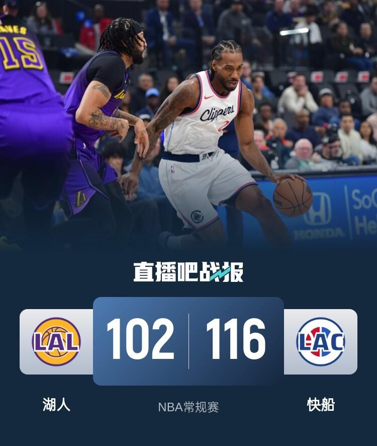首节之争双方状态都非常出色单节命中率均在50%以上,节中两队更是弹无虚发打起高效对攻;这样的局面一直持续到第二节,但后半段湖人率先熄火导致局面落入被动,快船抓住机会送出一波19-4的攻势一举拉开两位数分差并奠定半场15分的领先。休息归来快船完全控制局面一度拿到26分的领先,哈登也在期间超越“大O”生涯得分升至第14位;不过局面大优的情况下快船遭遇3分40秒里仅得2分的得分荒,湖人则及时找回状态送出11-0的攻势避免崩盘;末节面对湖人迫近至11分的压力,哈登和祖巴茨联手拿下关键10分帮助快船重新拉开比分稳住局面同时也奠定胜局。最终,快船主场轻取湖人迎来4连胜。