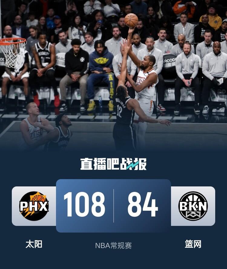 🏀布克32+6 杜兰特24+8 理查兹8+15 太阳送篮网5连败