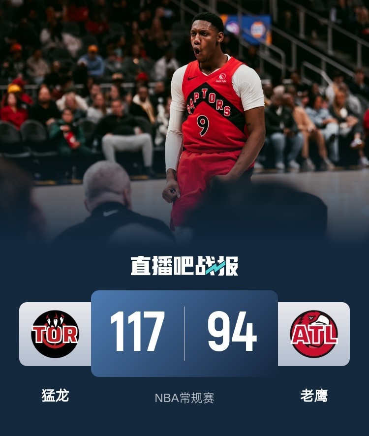 🏀巴恩斯24+11+7 巴雷特23+8 杨16分11失误 猛龙送老鹰4连败
