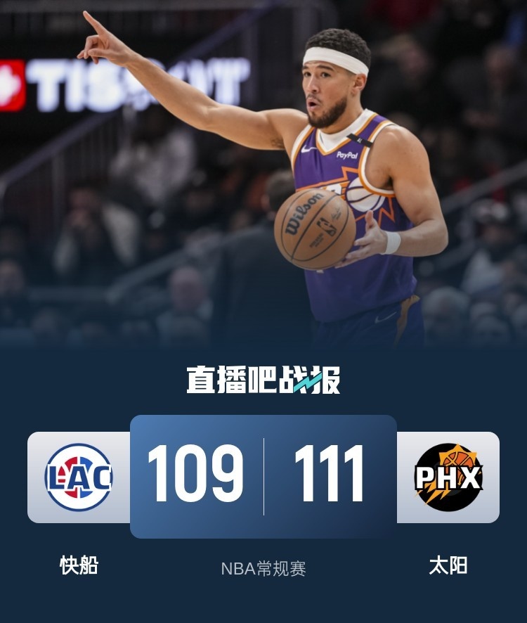🏀哈登24+6+10+7失误 布克26+7+8 快船三人20+不敌太阳遭三杀