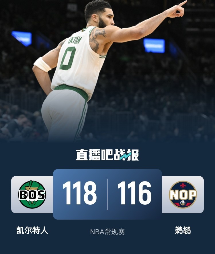 🏀塔图姆27+10&绝杀 墨菲20中15&8记三分空砍40分 绿军险胜鹈鹕