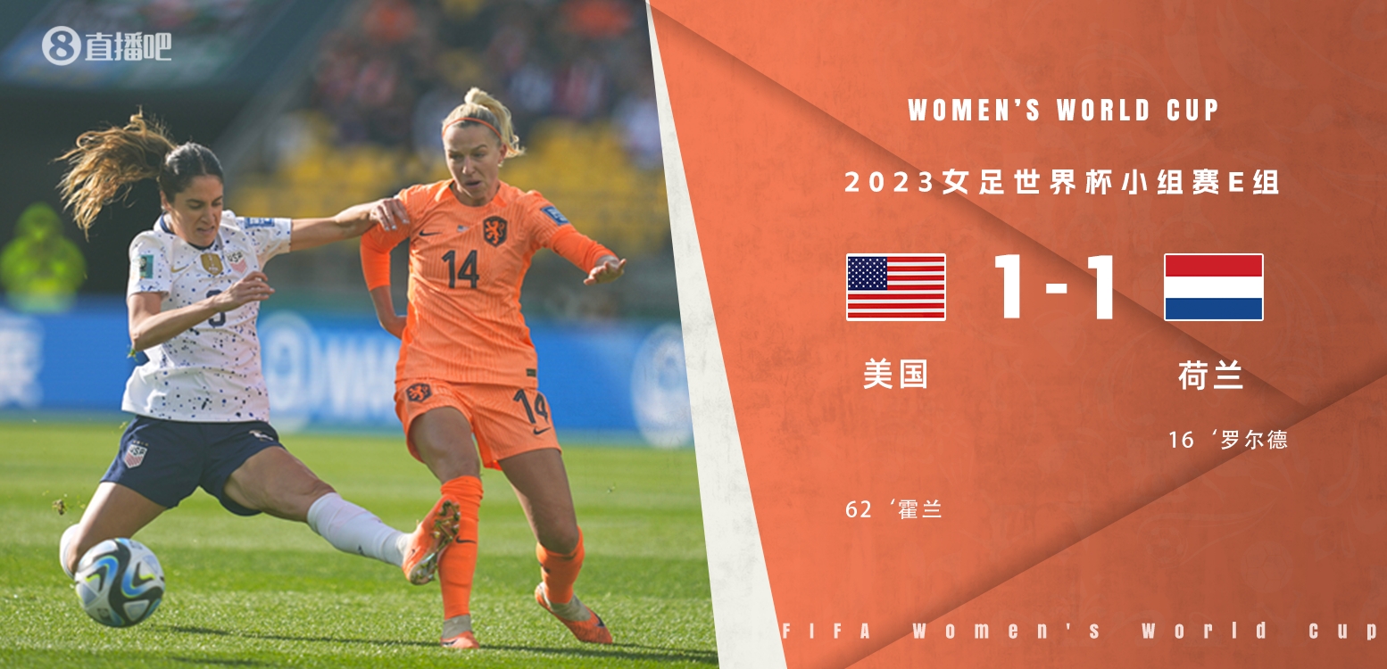 女足世界杯-美国1-1荷兰 罗尔德贴地斩霍兰扳平美国力压荷兰居第1