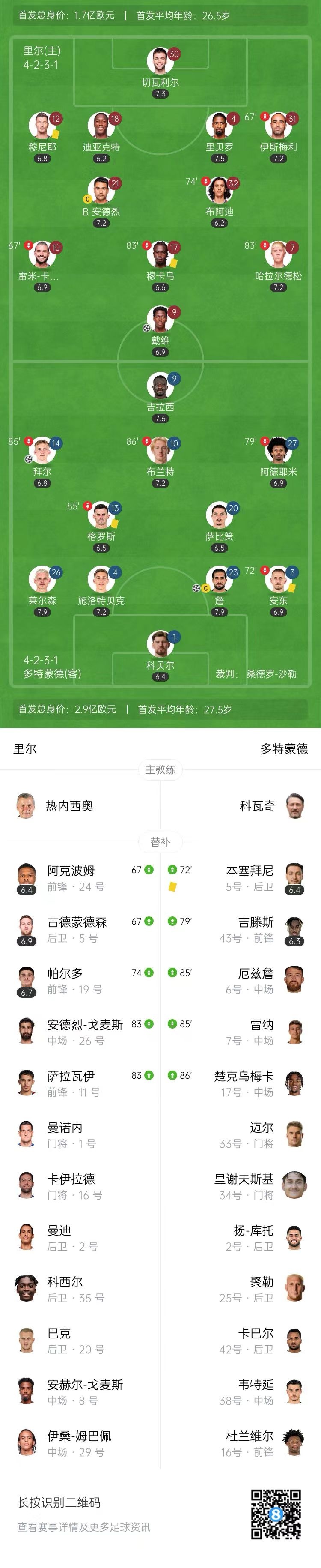 3月13日讯 北京时间3月13日1:45,欧冠1/8决赛次回合,里尔坐镇主场皮埃尔-莫鲁瓦球场迎战多特蒙德。上半场,科贝尔黄油手送礼,戴维破门助里尔领先,格罗斯单刀门前被挡出,切瓦利尔三连扑力保球门不失。下半场,吉拉西造点,埃姆雷-詹点球破门扳平,拜尔爆射反超比分。全场比赛结束,多特蒙德客场2-1里尔,总比分3-2淘汰对手,1/4决赛将迎战巴塞罗那。