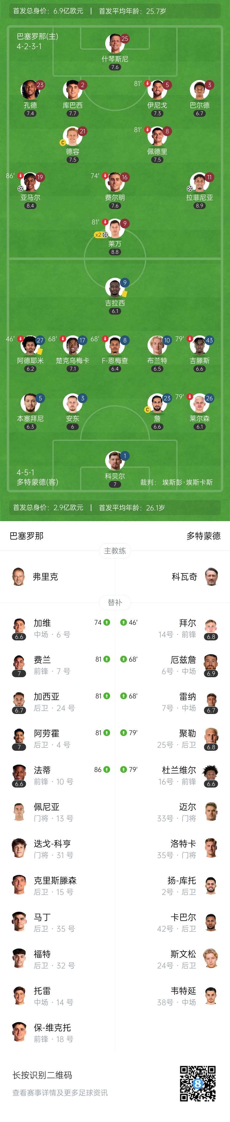 杀死悬念?巴萨4-0多特 莱万双响拉菲尼亚1射2传亚马尔破门
