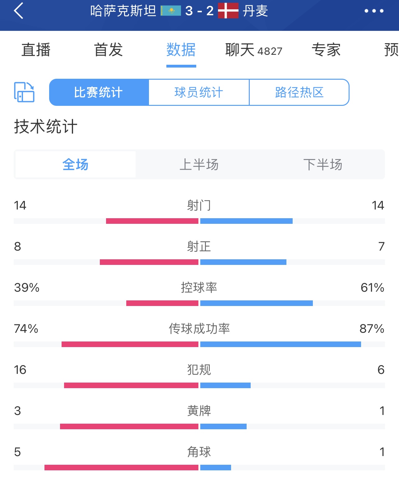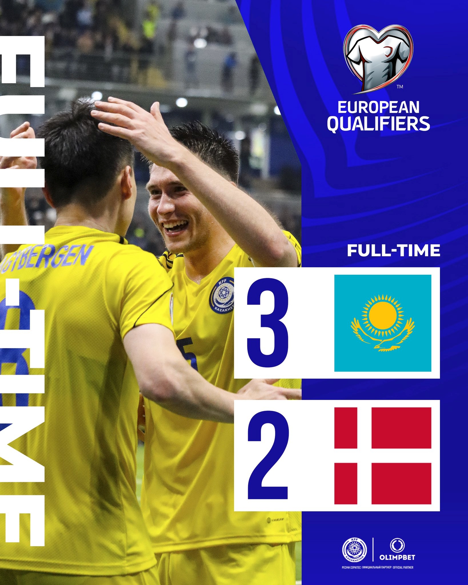 惊天冷门💥!欧预赛-哈萨克斯坦3-2逆转丹麦 双方世界排名差100