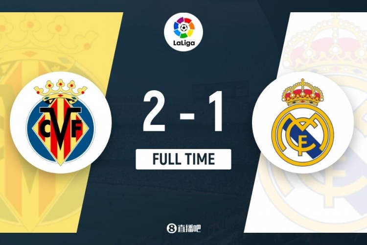 全场比赛结束,皇家马德里1-2比利亚雷亚尔。