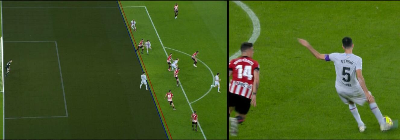 第45+1分钟,布斯克茨晃动后斜塞,拉菲尼亚禁区右侧接球调整后爆射,这球洞穿阿吉雷萨瓦拉五指关,边裁举旗示意越位,VAR介入,主裁判判定此球有效,巴萨1-0毕尔巴鄂竞技。↓
