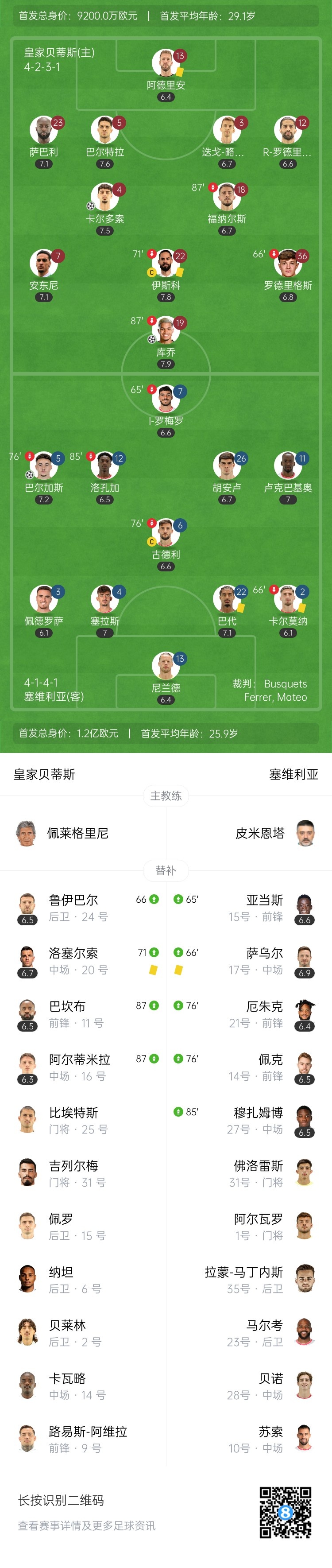 【双方首发及换人信息】