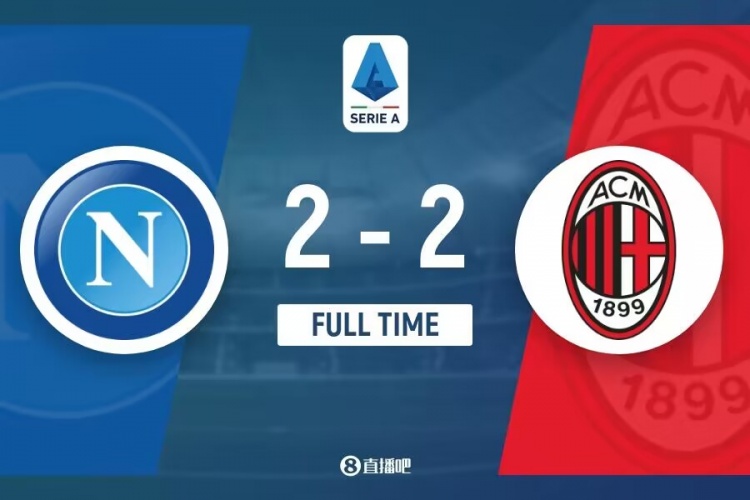 全场比赛结束,最终AC米兰2-2那不勒斯。