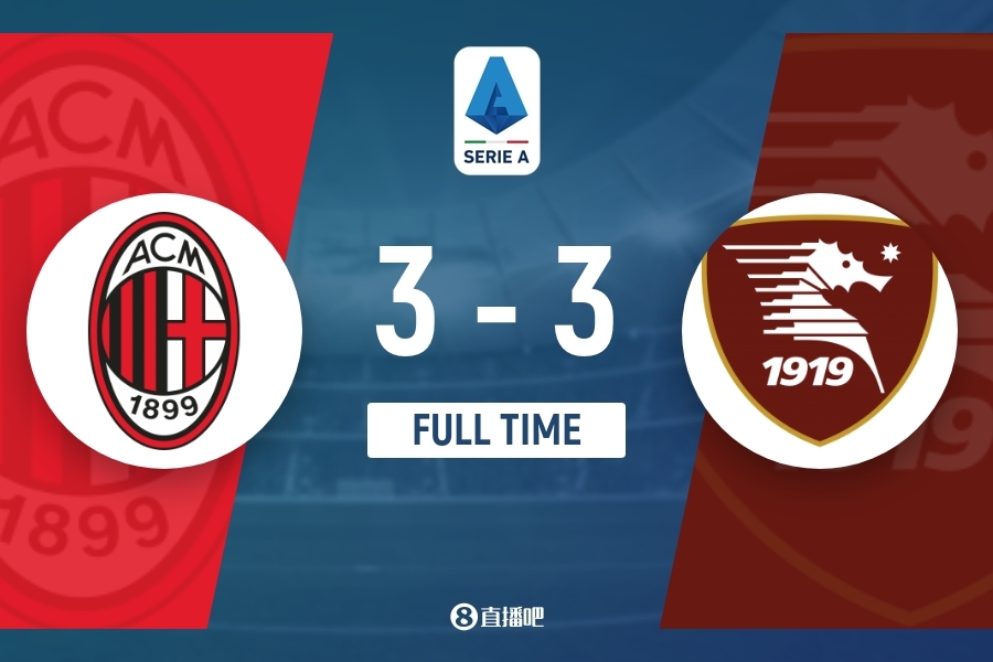 最终本场比赛结束,米兰3-3战平萨勒尼塔纳。