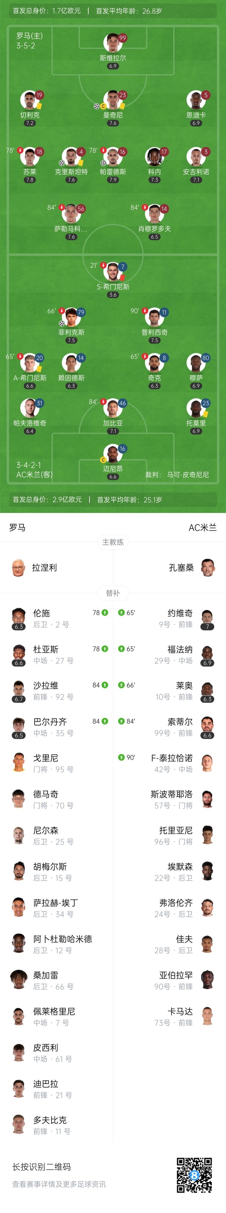 5月19日讯 北京时间2:45,意甲第37轮罗马vsAC米兰,比赛在罗马奥林匹克球场打响!上半场,曼奇尼2分钟头球破门!S-希门尼斯故意肘击染红!菲利克斯帮助10人米兰扳平比分。下半场,帕雷德斯直接任意球破门!尾声阶段克里斯坦特远射破门锁定胜局!最终,AC米兰客场1-3不敌罗马,彻底无缘下赛季各级欧战!罗马升至第5名,位于欧联区。