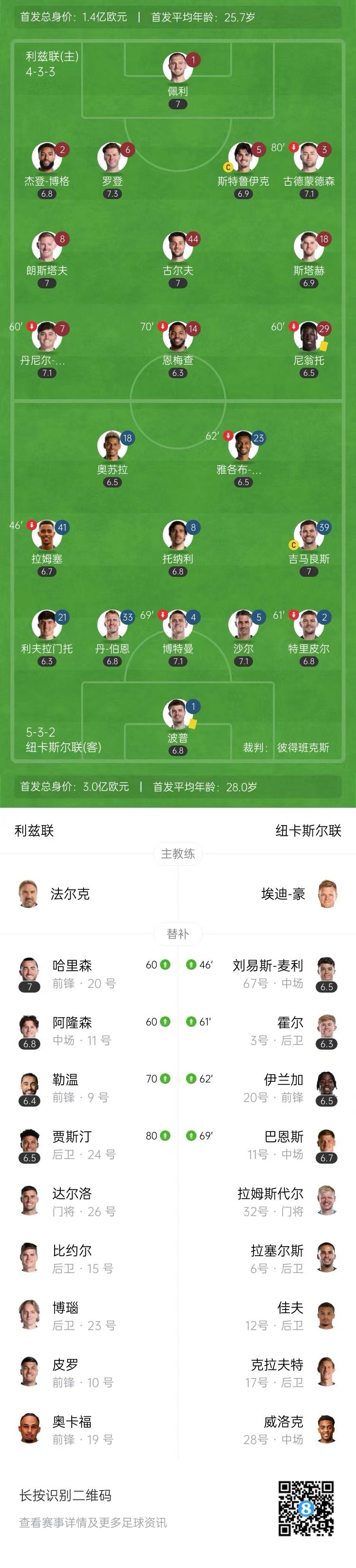 【双方比赛阵容】
