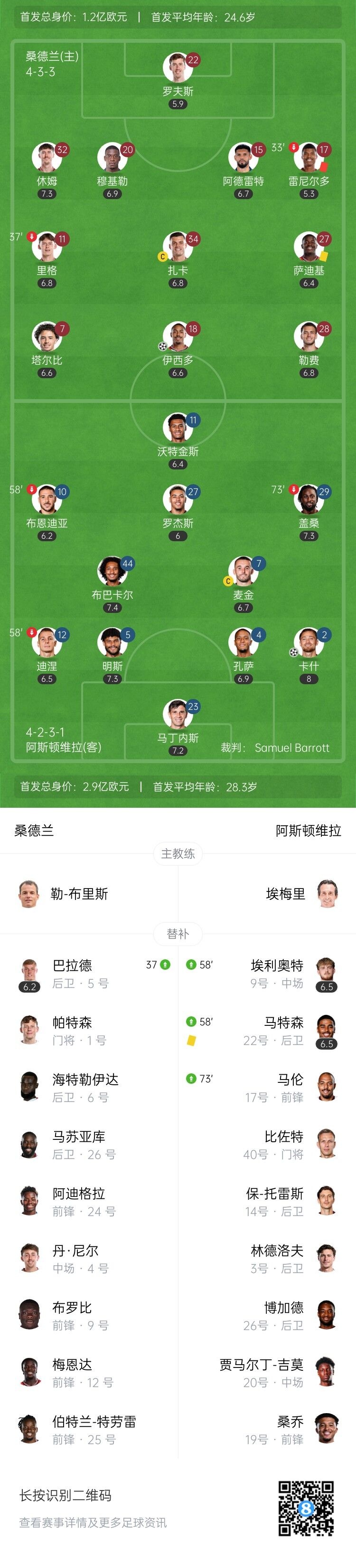 第75分钟,扎卡灵性头球摆渡,伊西多不作调整直接抽射破门!1-1!十人桑德兰顽强扳平比分!↓