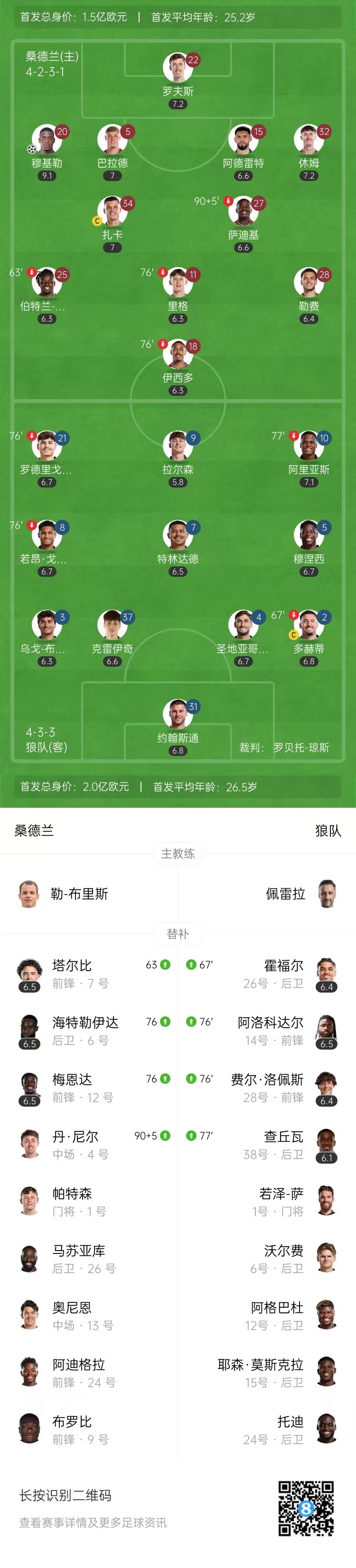 第16分钟,穆基勒和队友打出撞墙配合后面对门将将球打进,桑德兰1-0狼队。↓