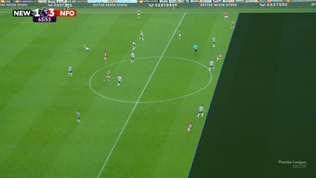 第12分钟,纽卡也是前场断球成功,但特里皮尔的传中直接飞出底线。↓