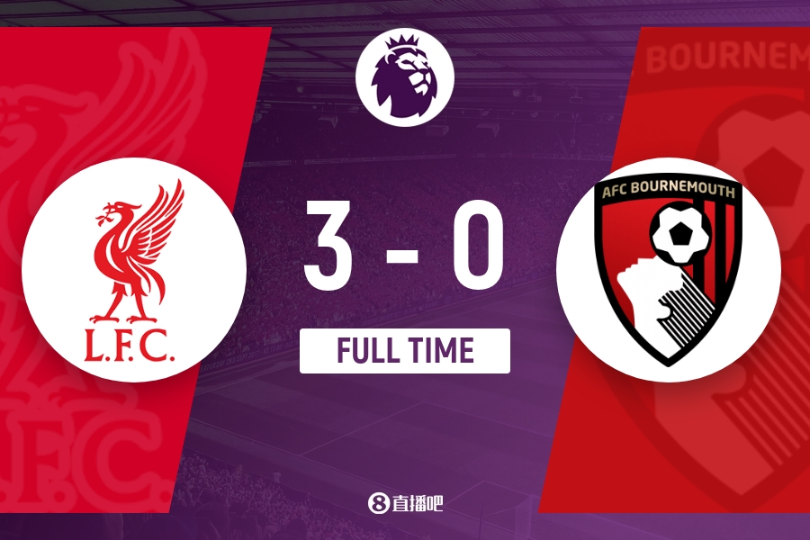 全场比赛结束,利物浦3-0击败伯恩茅斯。