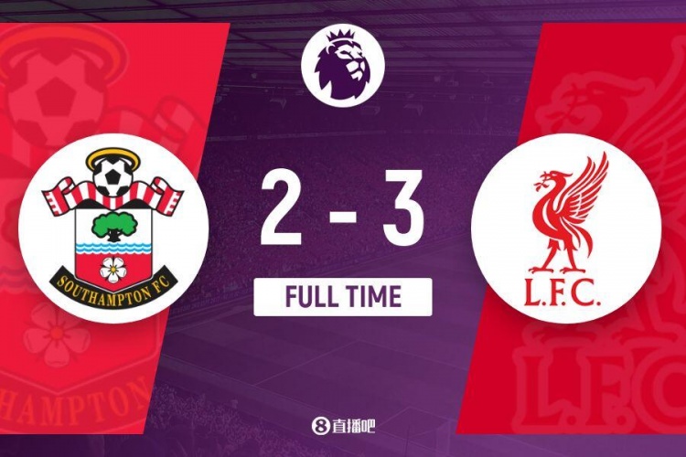 全场比赛结束,利物浦3-2击败南安普顿。
