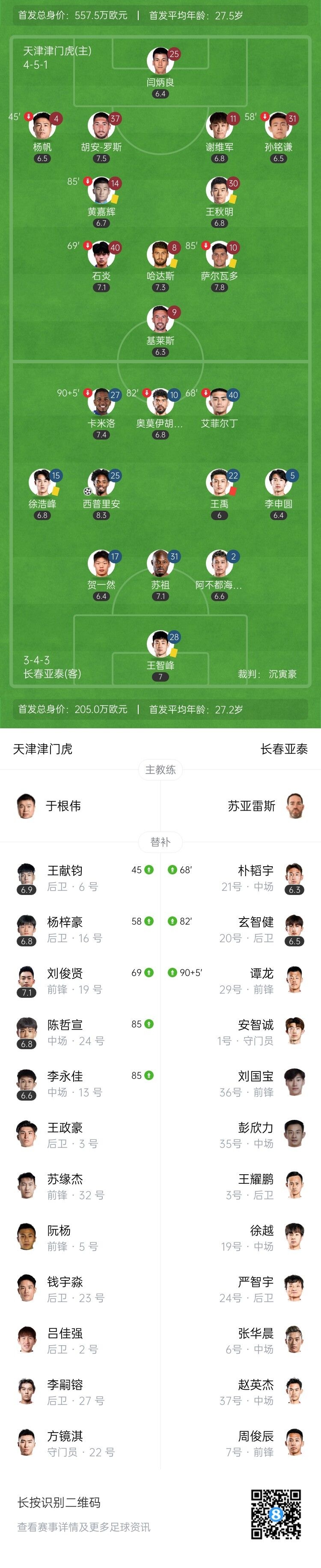 90分钟后丢2球!十人亚泰2-2津门虎 谢维军绝平 亚泰仍位列降级区