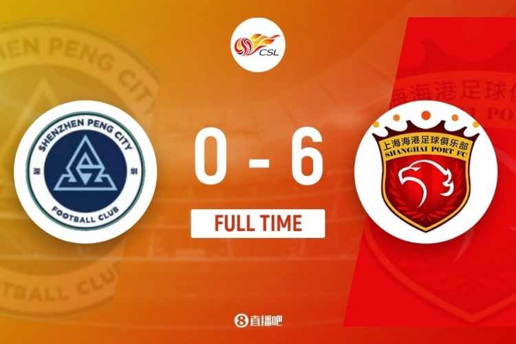 伤停补时8分钟。全场比赛结束,上海海港6-0深圳新鹏城。
