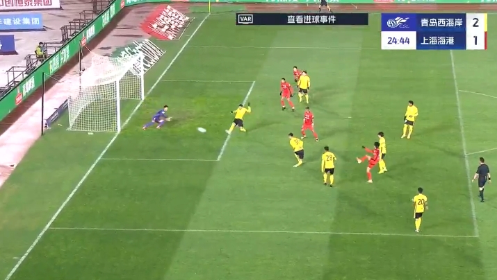 海港后防被断再次丢球!第19分钟,西海岸前场继续高位逼抢,戴维森左路断球后传中,阿齐兹禁区内转身扫射破门,青岛西海岸2-0上海海港!↓