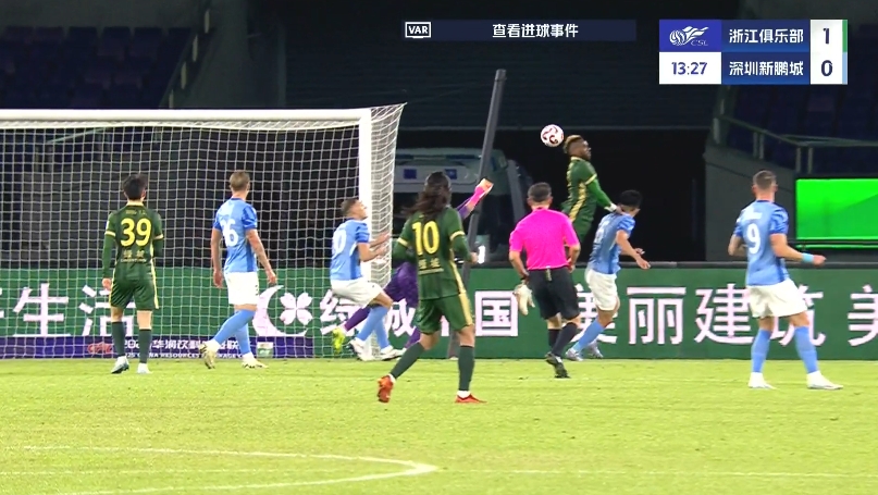 第13分钟,童磊传中,布彭扎头球一蹭,赵石出击没碰到球!球进了!布彭扎2场3球!浙江1-0领先深圳↓