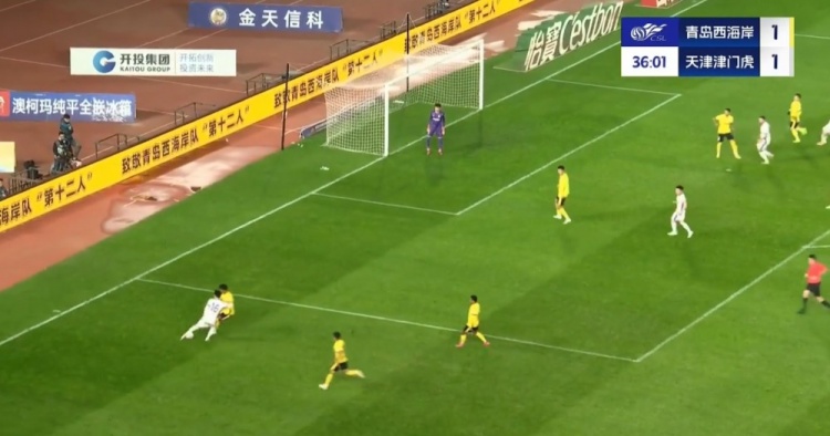 张修维外脚背直塞策动+抢点破门,阿齐兹助攻!西海岸扳平!第33分钟,张修维外脚背精彩直塞到右路,阿齐兹低平球传中到门前,张修维迅速插上抢点铲射入网,青岛西海岸1-1天津津门虎!↓