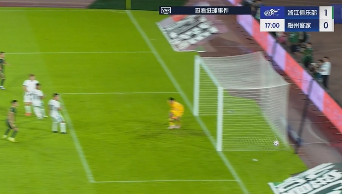 第17分钟,浙江队左路攻势,孙国文传中,王钰栋禁区内右脚停球,左脚顺势抽射!浙江队1-0领先梅州↓
