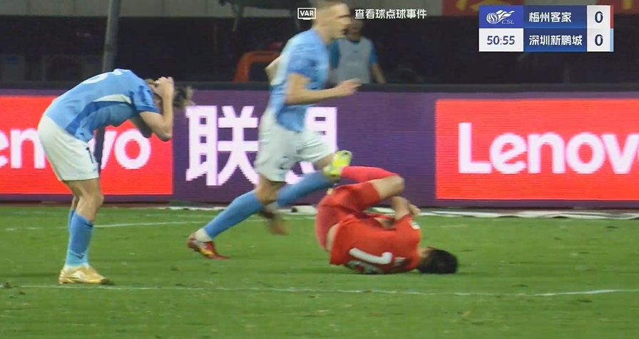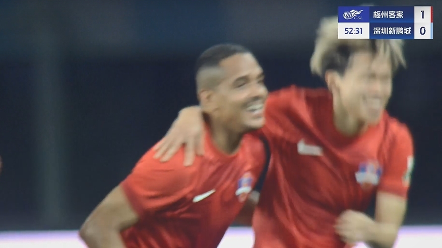 罗德里戈主罚点球命中,梅州客家1-0深圳新鹏城。↓
