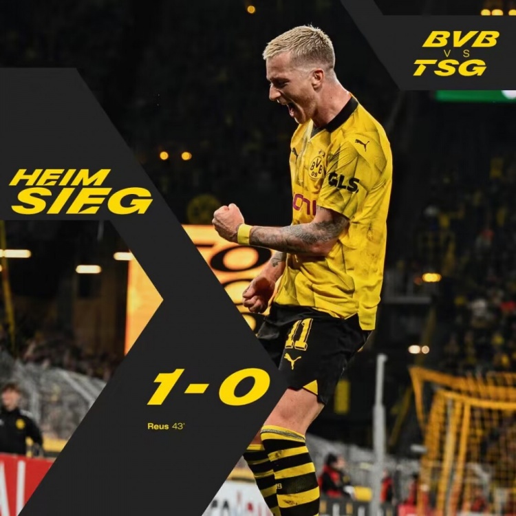 全场比赛结束,多特1-0霍芬海姆。