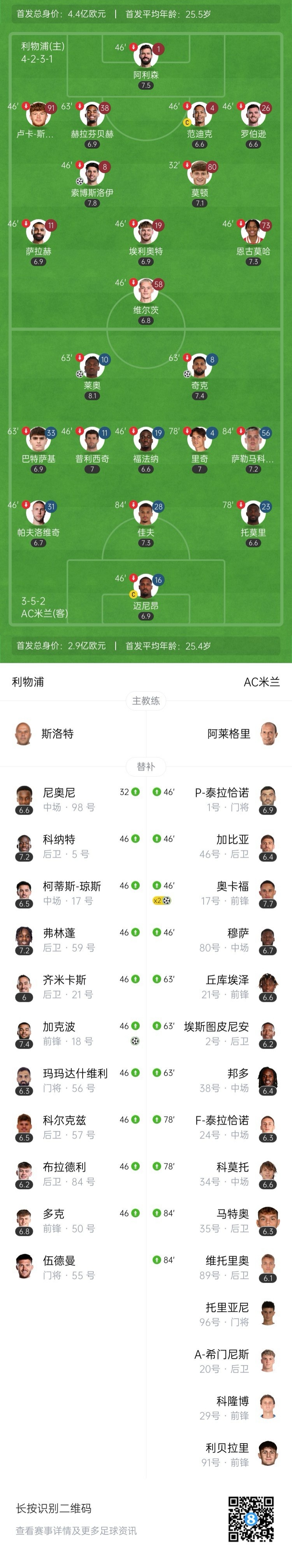第10分钟,米兰取得领先,普利西奇后场传球直接发动反击,莱奥带球推进至禁区小角度抽射上角得手,米兰1-0领先利物浦,进球后莱奥比出“20”手势致敬若塔。↓