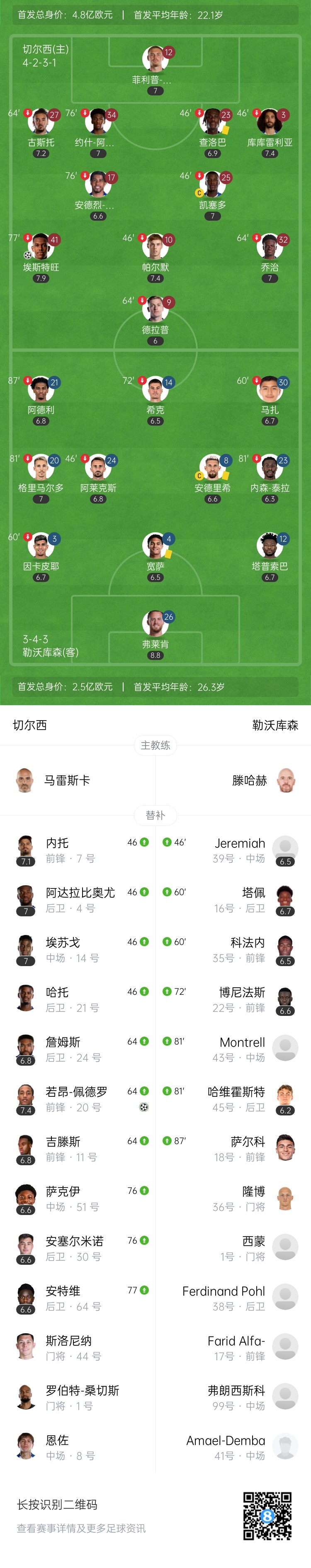 【双方首发及换人信息】