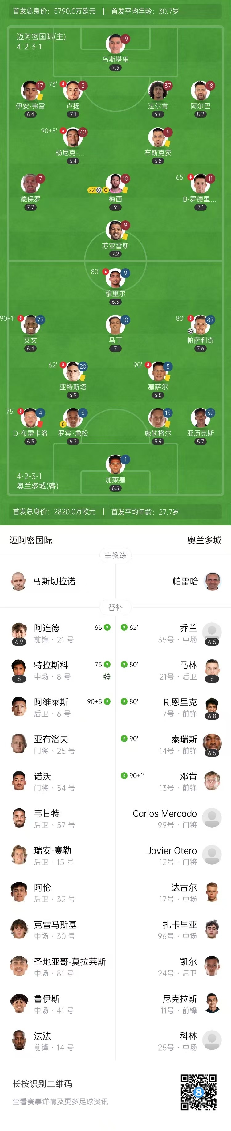 全场比赛结束,迈阿密国际3-1奥兰多城。
