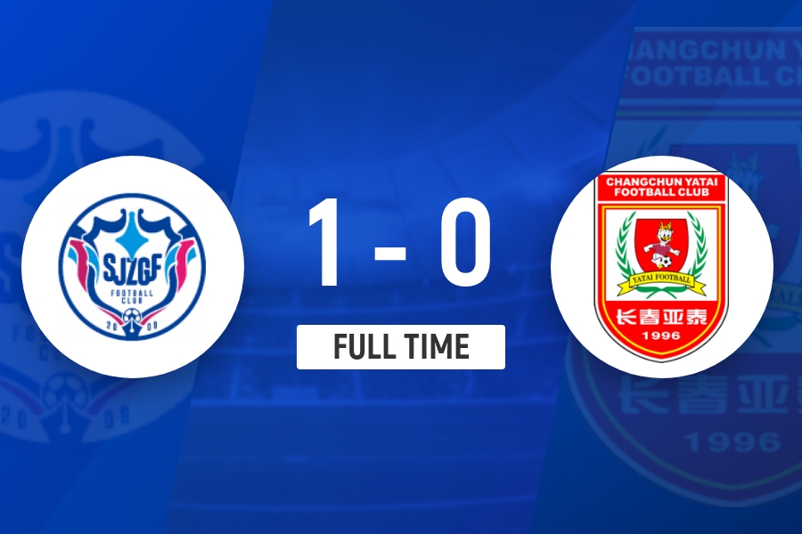 全场比赛结束,石家庄功夫1-0长春亚泰。