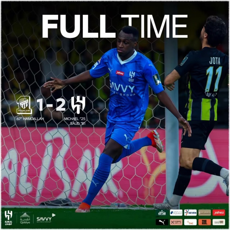 吉达联合首发:1-马约夫、26-赫加齐、30-阿尔穆萨(45'90-罗马里尼奥)、15-卡德什、37-斯库尔、14-纳什里(45'12-扎卡里亚-阿尔-豪萨维)、16-加姆迪(68'29-沙姆拉尼)、7-坎特、17-萨哈菲(61'11-若塔)、27-艾哈迈德-阿尔加姆迪、99-哈姆达拉