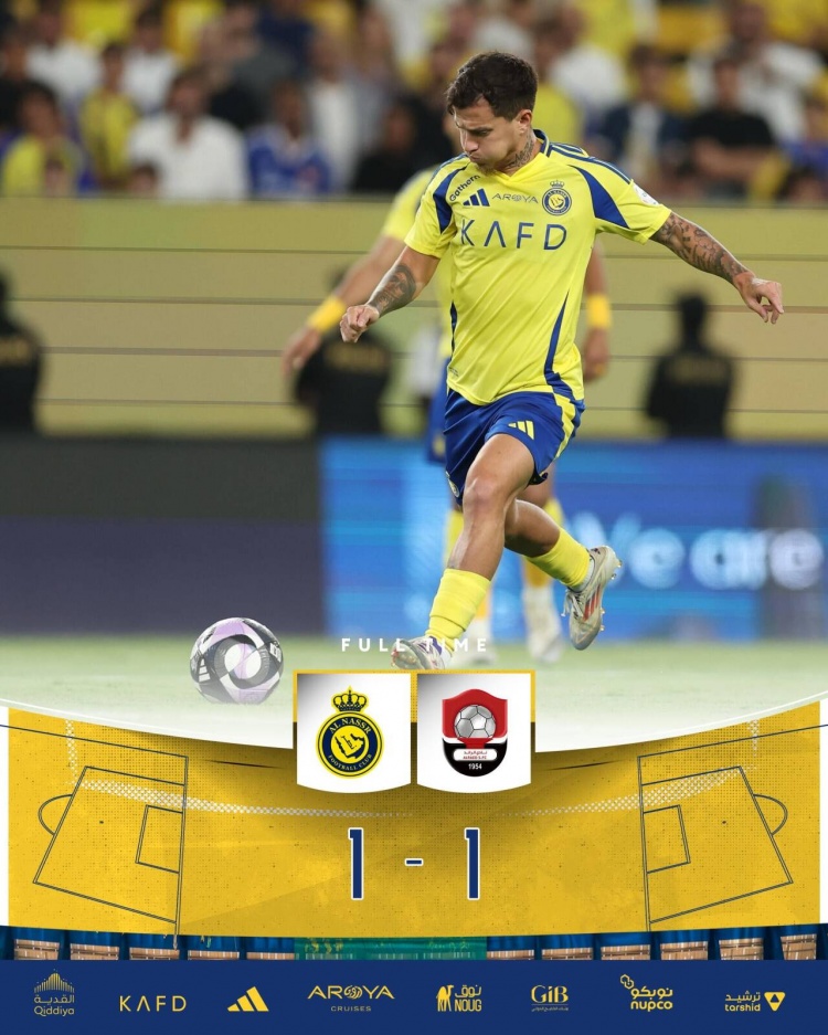 最终,利雅得胜利1-1布赖代先锋。